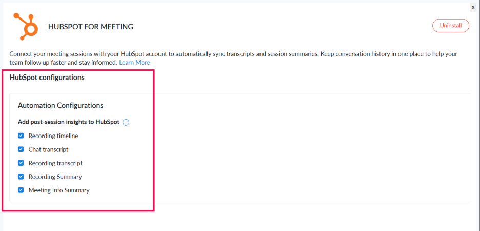 The Zoho Meeting–HubSpot integration offers a powerful set of features designed to streamline your processes:Â
